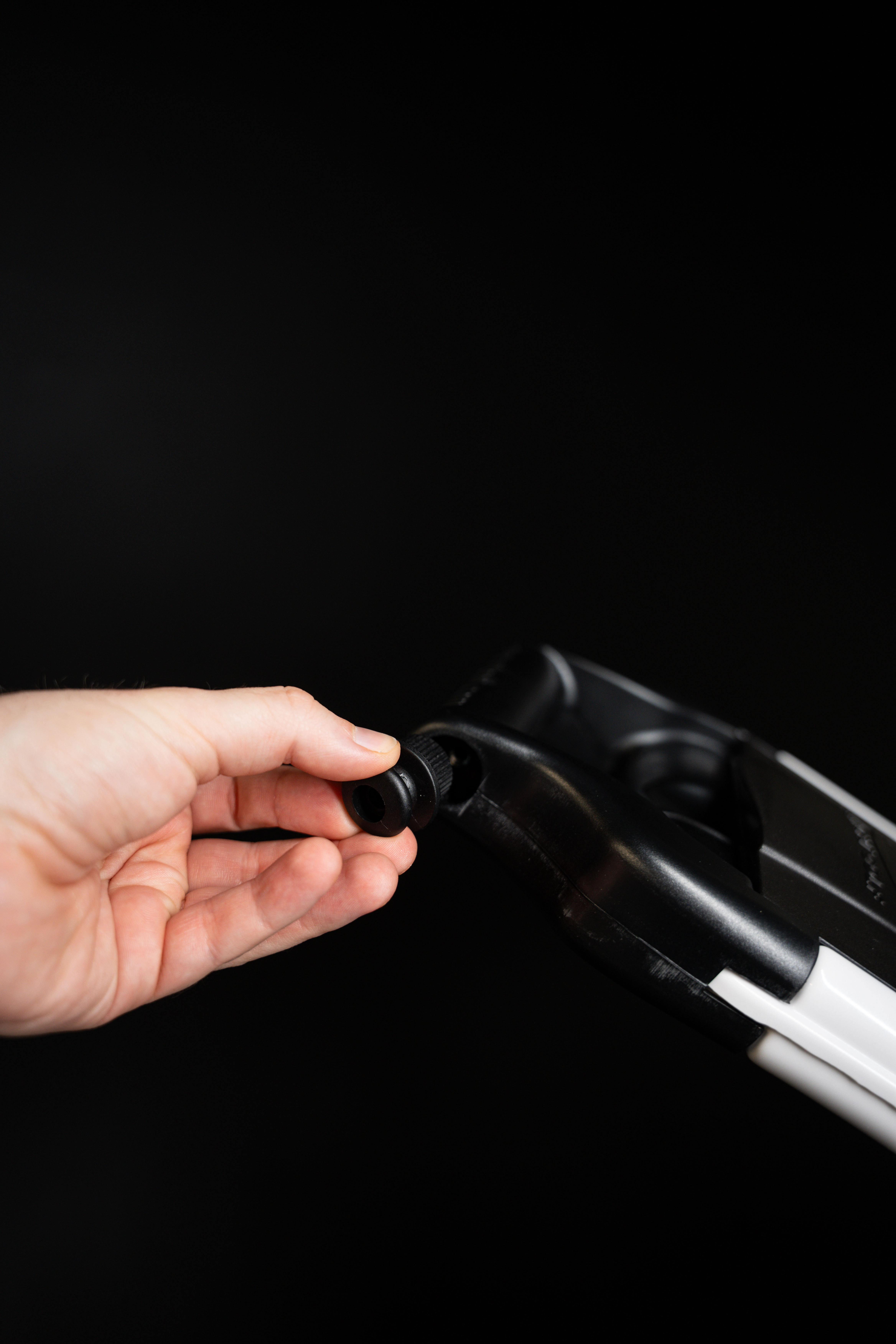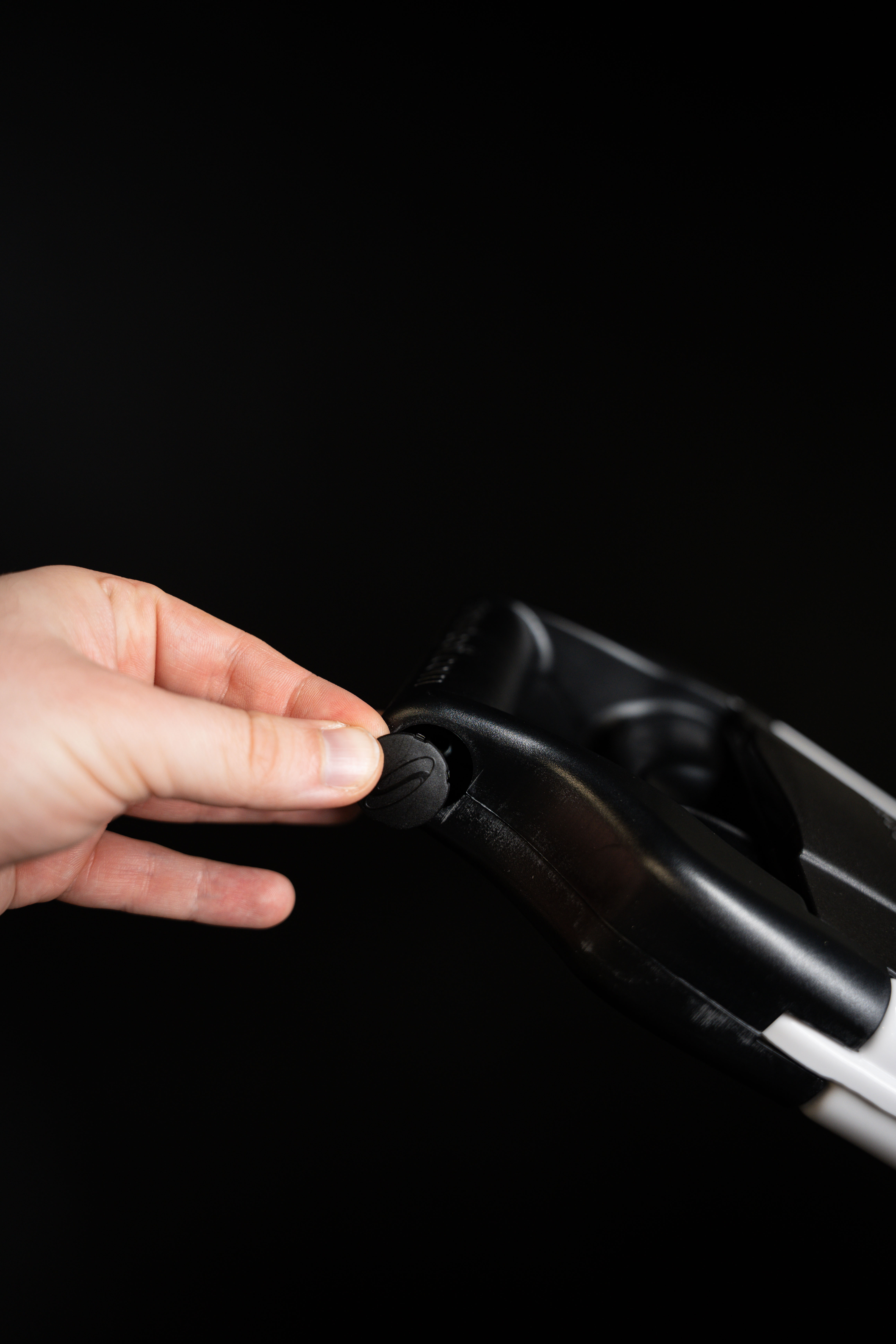 On the side of the cart handle, you will find a small protective cap covering the accessory mounting point. - Remove the protective cap